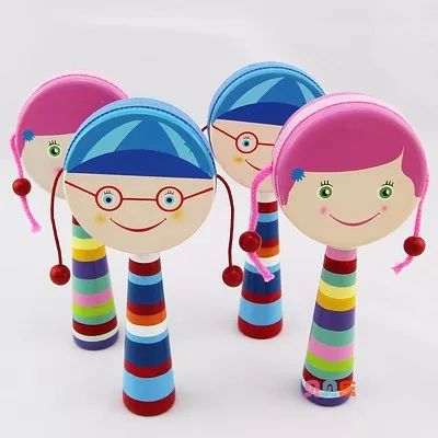 1、摇响玩具(拨浪鼓等):摇动拨浪鼓,让宝宝寻找声源,能锻炼宝宝的听觉能力,让宝宝抓握拨浪鼓,摇动能锻炼宝宝的精细动作;