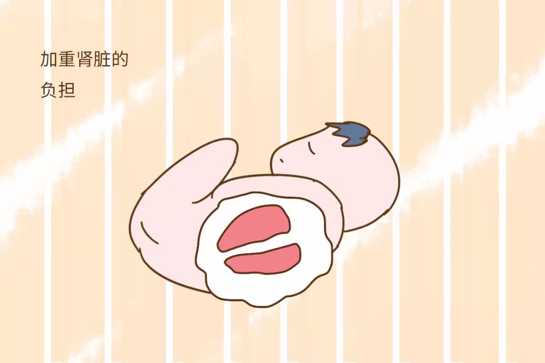 宝宝太小,肾脏功能还没有发育完全,所以宝宝的肾脏不能代谢过多的纳,从而会加重宝宝的肾脏负担,另外钠盐过量的储存在宝宝的体内,无法排除,会导致宝宝出现水肿或者高血压的情况。
