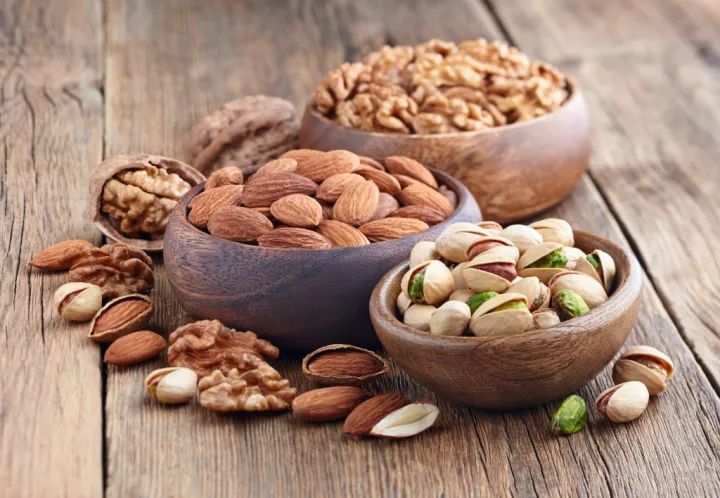 坚果类:坚果一直被认为是容易引起过敏的食物之一。在英国,这类食物被要求5岁以后才能给儿童吃。除了致敏这一点,还因为坚果容易在进食过程中造成窒息。不过在宝宝一周岁后,可以尝试把磨碎的坚果加在粥、饼或是小点心里,增加香味。