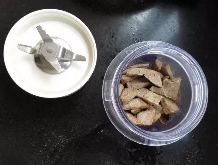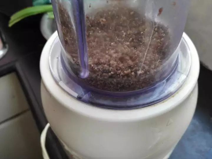 7、将炒好的猪肝碎晾凉后再次放入料理机中打碎,打成粉末状。