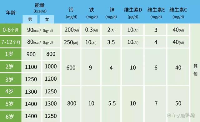 △中国居民膳食营养素参考摄入量表(AI表示适宜摄入量)
