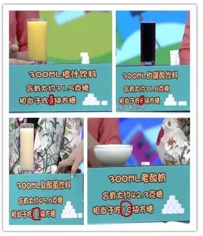 有关研究显示,如果300ml的可乐,含糖量是8块的话,那么“乳酸菌饮料”含糖量相当于11块。