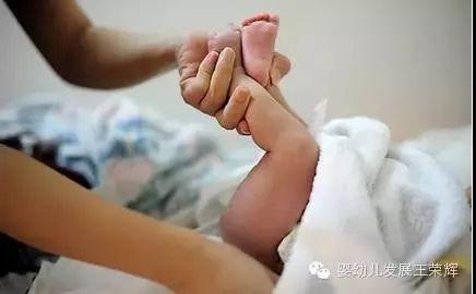 如下图,这样抓握宝宝的脚,宝宝一动,容易拉伤宝宝的脚踝或髋关节。
