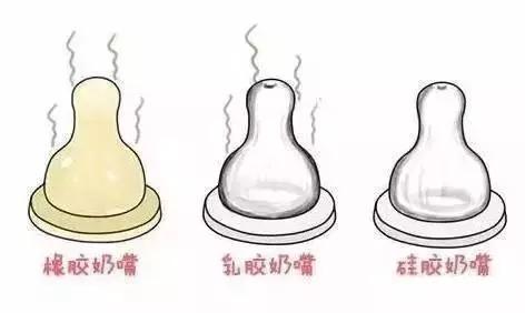 橡胶奶嘴:呈淡黄色,质感近似妈妈的乳头。但味道重,容易老化,抗热性和抗腐蚀性较差。