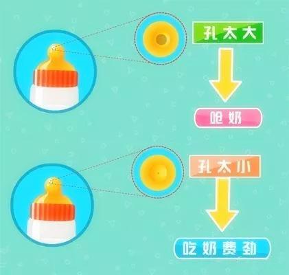 市面上最常见的奶孔有圆孔、十字孔、Y形孔。奶嘴孔过小,宝宝吃起奶来非常费劲,而且容易让宝宝胀气。而奶嘴孔过大的话,容易引发呛奶。