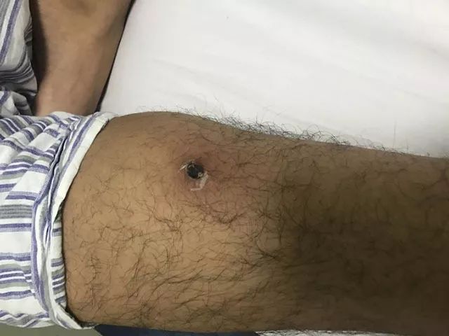 (咬伤处皮肤呈焦茄状。图片来自网络,侵删)