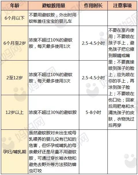 每个年龄段喷涂避蚊胺的使用方法如下: