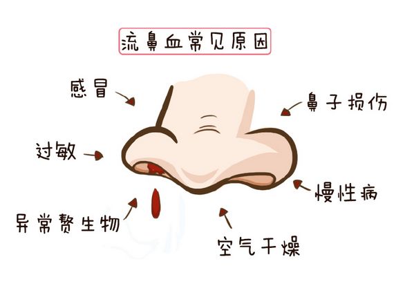 有的宝宝尤其是在感冒或者过敏时,会经常流鼻血,因为感冒或者过敏的宝宝会使鼻黏膜受刺激并且肿胀,鼻黏膜受压力破裂就会引发流鼻血情况。