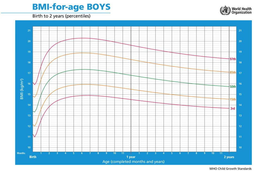 同样的,爸爸妈妈除了绘制身高、体重、头围三条曲线外,还应将BMI绘制成线。BMI比单纯测量体重判断宝宝胖瘦更加准确。