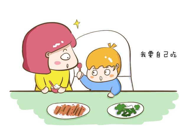 其实我们可以发现宝宝很多事情都喜欢亲自来,他们会从你的手里抢走东西自己去尝试,尽管他们还不知道这要怎么使用或者这是什么,那么为什么唯独吃饭就不能自己来呢,这很有可能就是你打击了宝宝的积极性。最开始宝宝想要自己吃饭的时候,你可以发现宝宝要从你手里抢走勺子还是你端着的碗,然后又是搅又是抓的折磨着碗里的食物,发展的结果就是满身、满脸、满桌子都是食物,遇到这种情况的时候很多宝妈都是去阻止、训斥,看到宝宝颤颤巍巍的用勺子把饭喂到了鼻子上,赶忙抢过来勺子帮孩子喂,看到宝宝把衣服桌子弄脏了,就会发火。如果你想让宝宝好好吃饭,可千万不能这么做,这恰恰是打击了宝宝的积极性,我们应该去鼓励宝宝尝试呀,没有人天生就会跑,都是要从爬、站、走,一步步开始的,吃饭当然也是一样的,没有人天生就会吃饭,天生就会用勺子把饭准确喂到嘴里去。