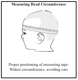 头围测量:用一条不易热胀冷缩的软尺,沿着宝宝眉弓上缘,从头部一侧经过枕骨粗隆最高处缠绕一周,读数。软尺要紧贴皮肤、大宝宝开始扎小辫的时候将发辫松开测量。