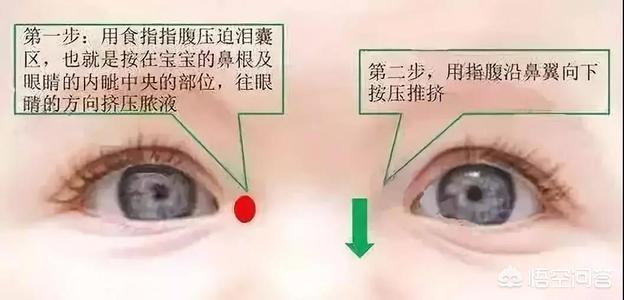 鼻泪管按摩方法:建议宝眼睛内侧即鼻梁两侧,将力用于皮下自上而下进行适度的泪囊区按摩,按摩时用拇指紧贴皮肤,迫使泪囊分泌物向下冲开封闭的膜状物。每天可进行2-3次。大部分宝宝会通过按摩缓解鼻泪管堵塞的问题。