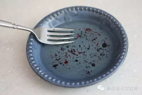 2.在一个单独的盘里,倒入3-4汤匙油和几滴不同颜色的食用色素