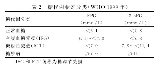 糖代谢状态分类(根据WHO1999年)