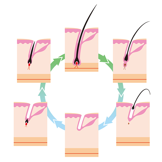 产生头发的器官是毛囊,毛囊的形态和活性是呈周期性变化的,周期性经过生长期、退行期和休止期。一般头皮毛囊的生长期是2~6年,经过短暂的退行期后,然后进入休止期,休止期一般在100天左右。人头皮毛囊约10万个,其中10%会处于休止期,这一部分头发在休止期结束时会陆续脱落,所以从数学上算,每天掉头发数量在100根以内是正常的。