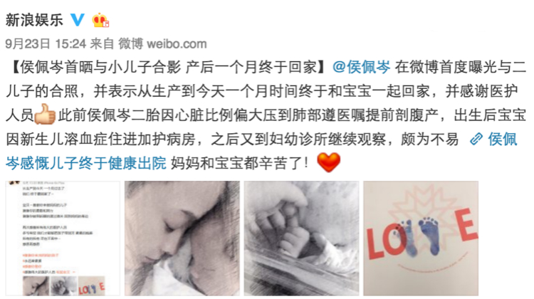 不久前,著名女艺人侯佩岑的二胎宝宝患上新生儿溶血症,出生后的宝宝直接进入加护病房。所幸目前母子平安,产后一月都已平安出院。