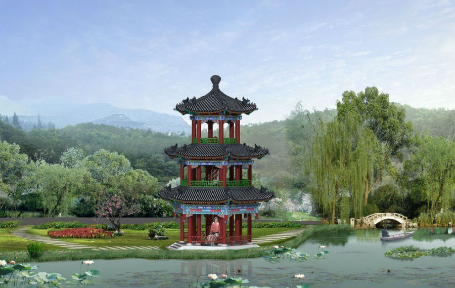 (2)庇护性景观构筑物应邻近居民主要步行活动路线布置,易于通达。并作为一个景观点在视觉效果上加以认真推敲,确定其体量大小。