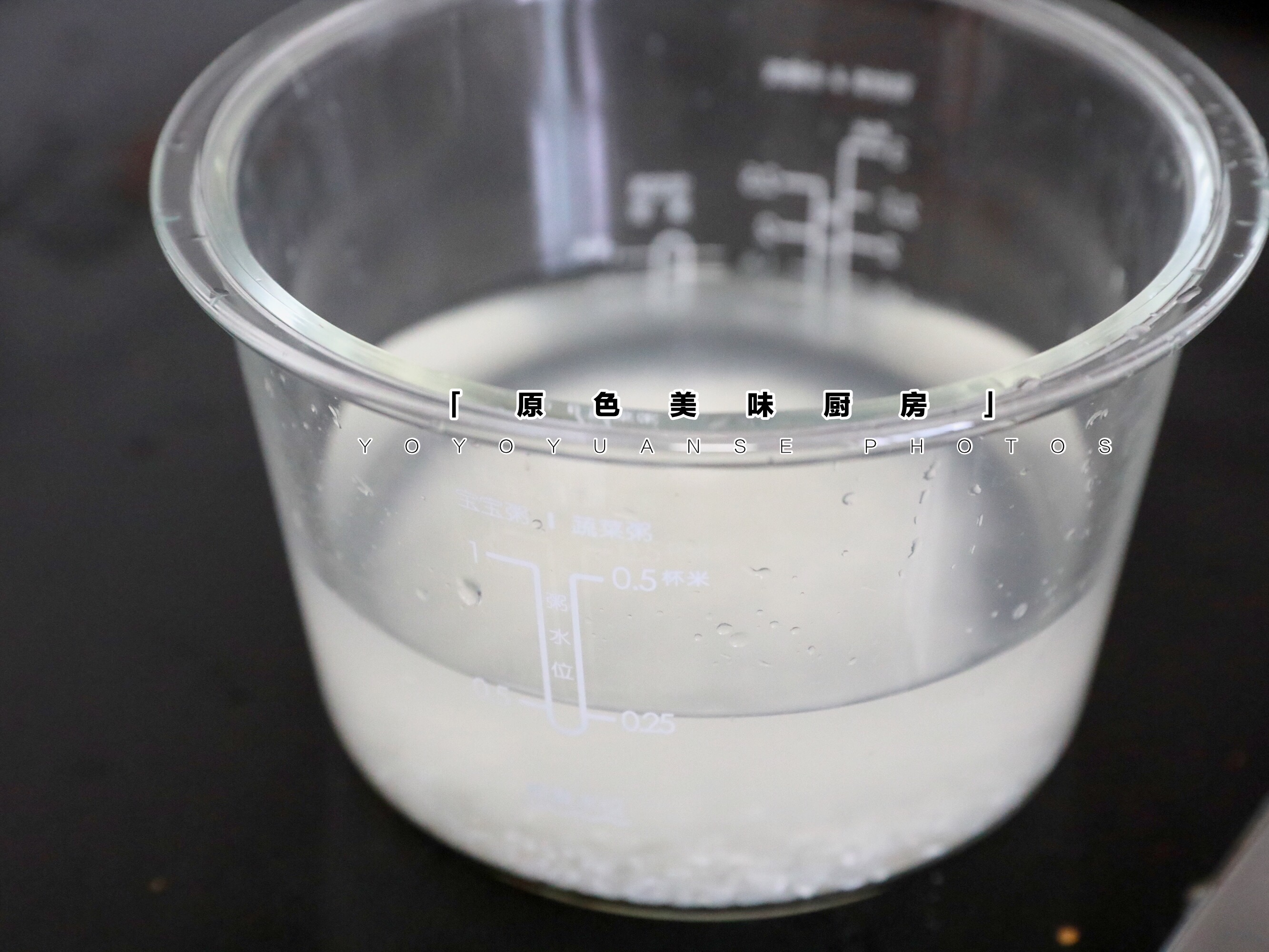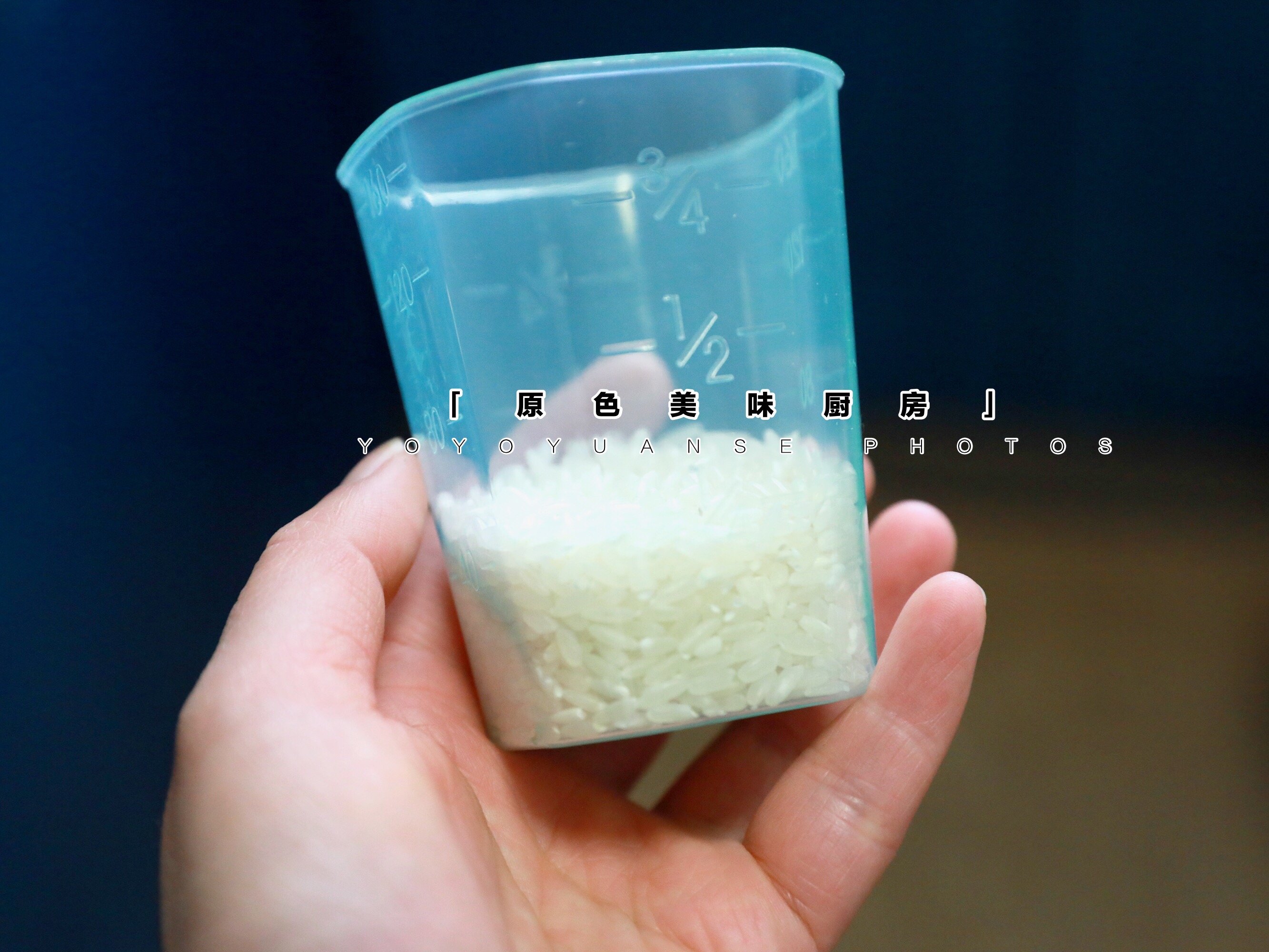 3.用电饭煲自带的量杯量出1/2杯大米。将大米淘洗干净。