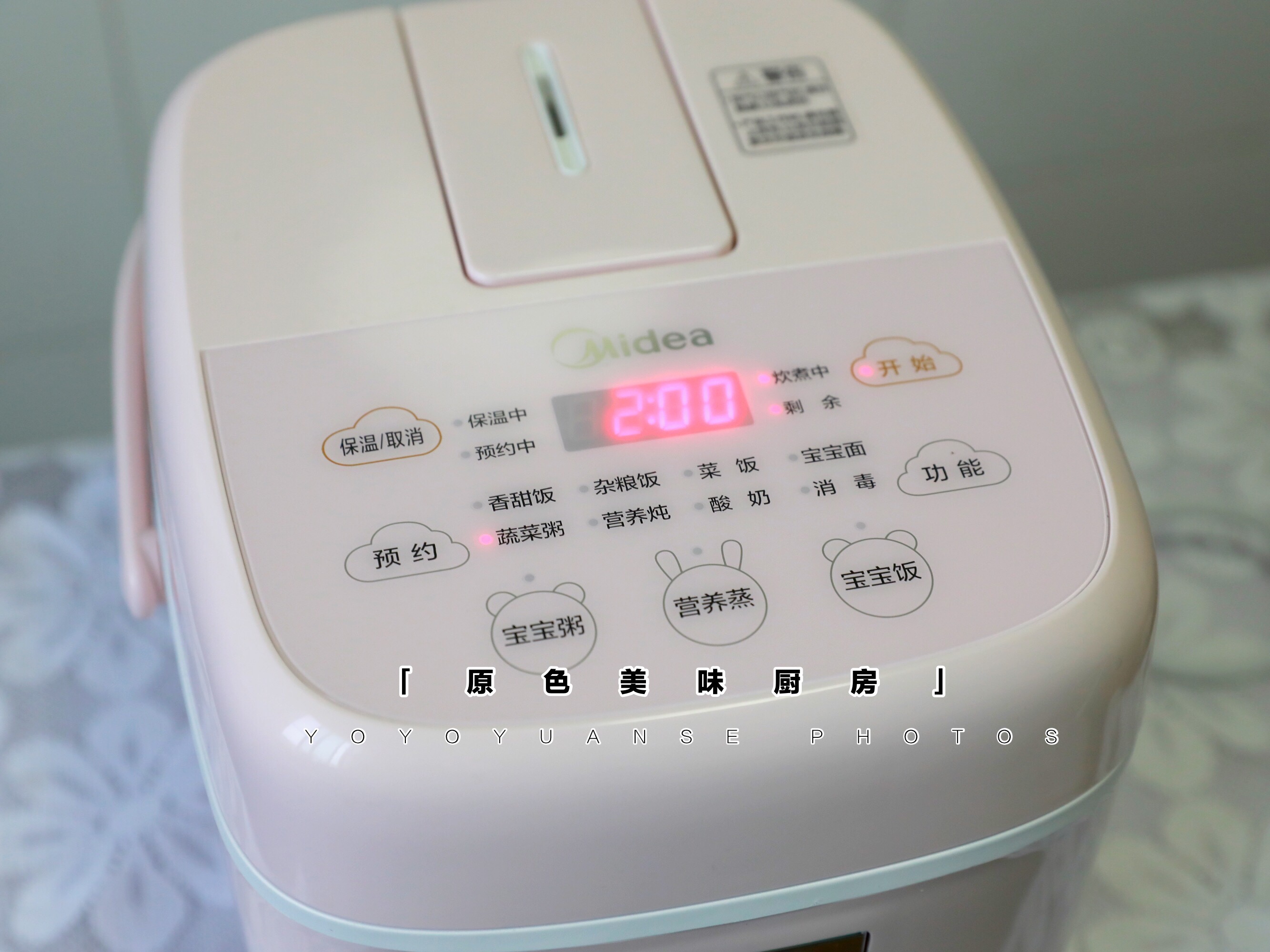 5.美的BB电饭煲选择蔬菜粥功能,显示2小时。如果你用的电饭煲没有这个功能可以直接选择煮粥就好了。