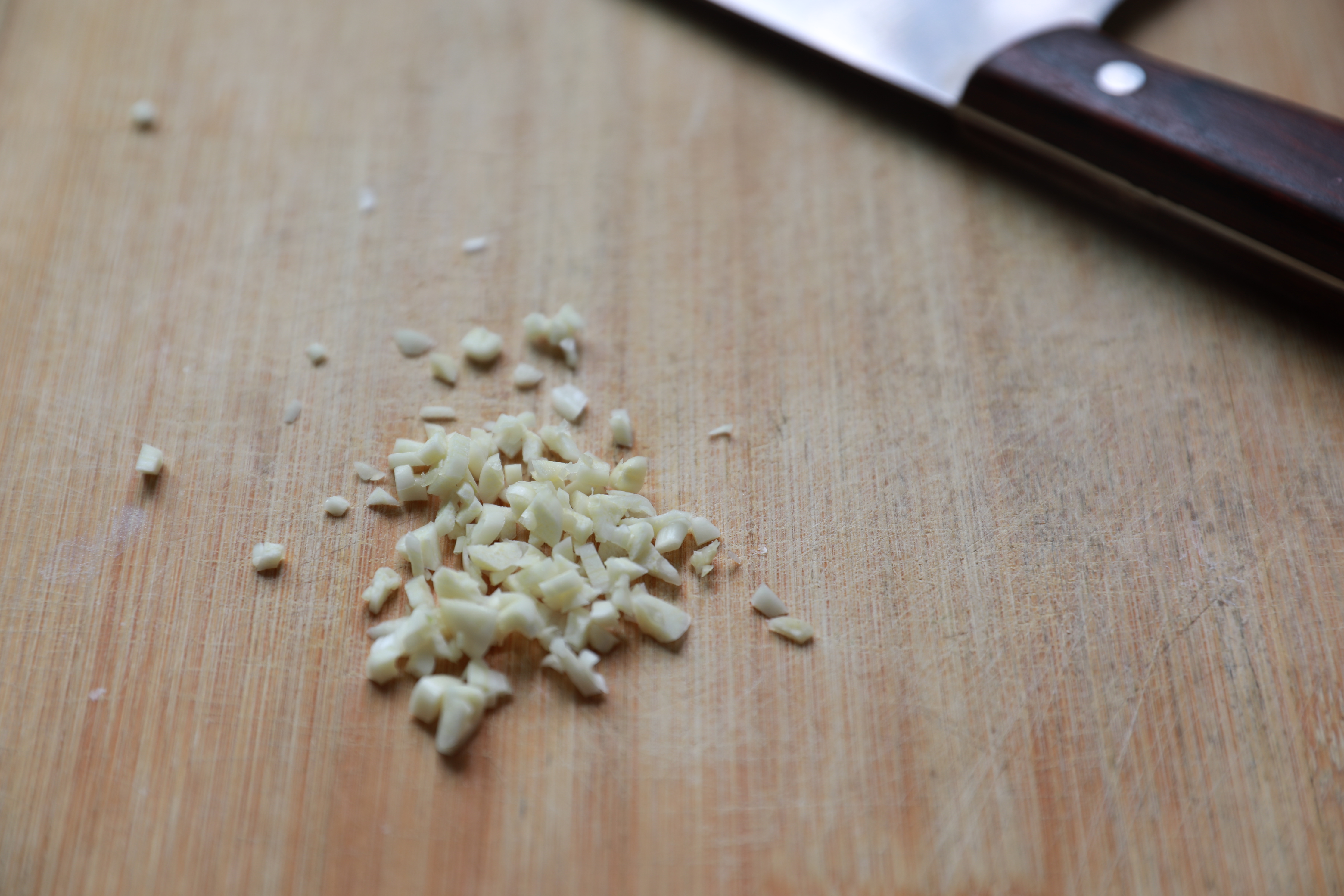3.蒜头切成末。