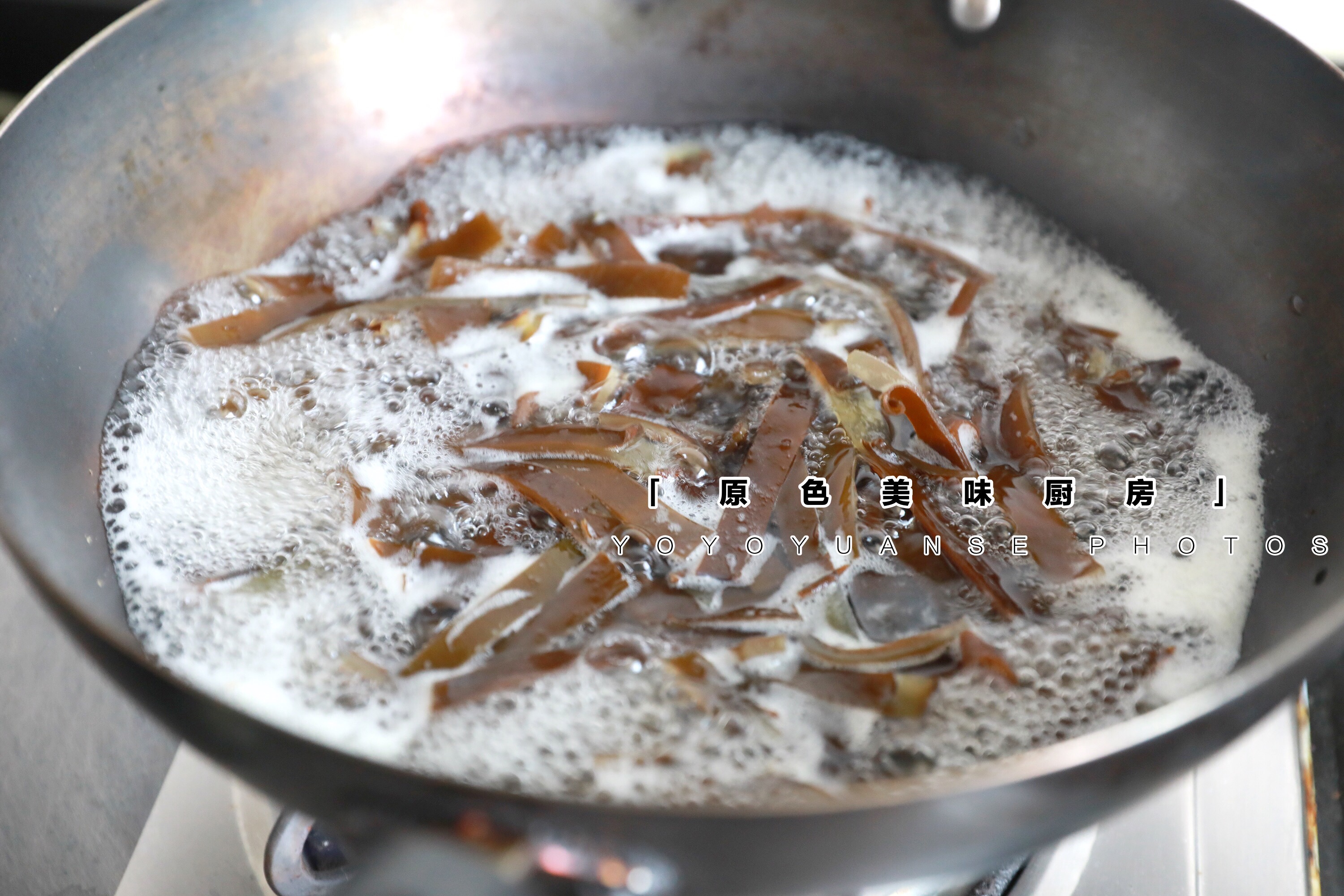 4.锅内加入足量水,煮开,加入海带焯熟。