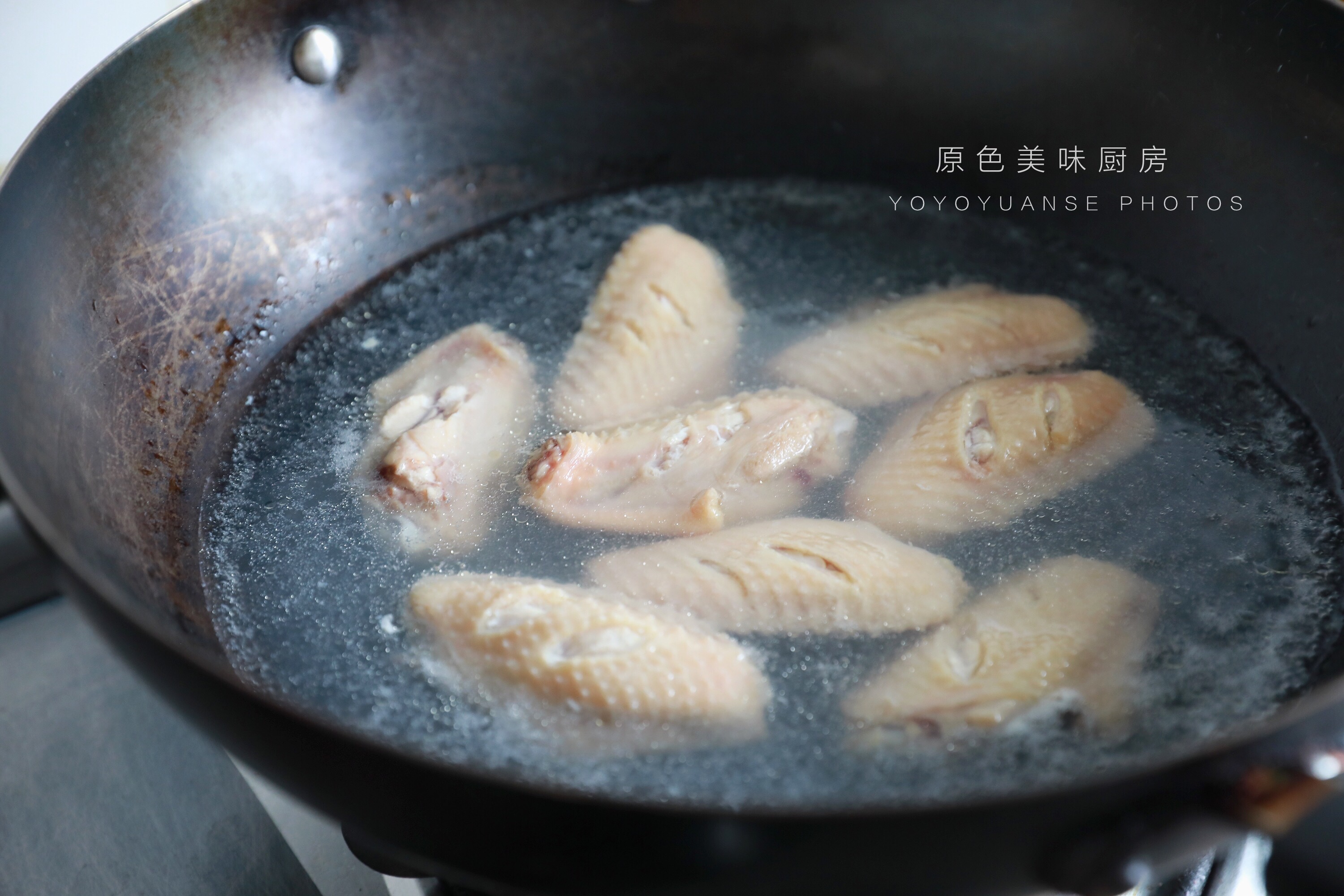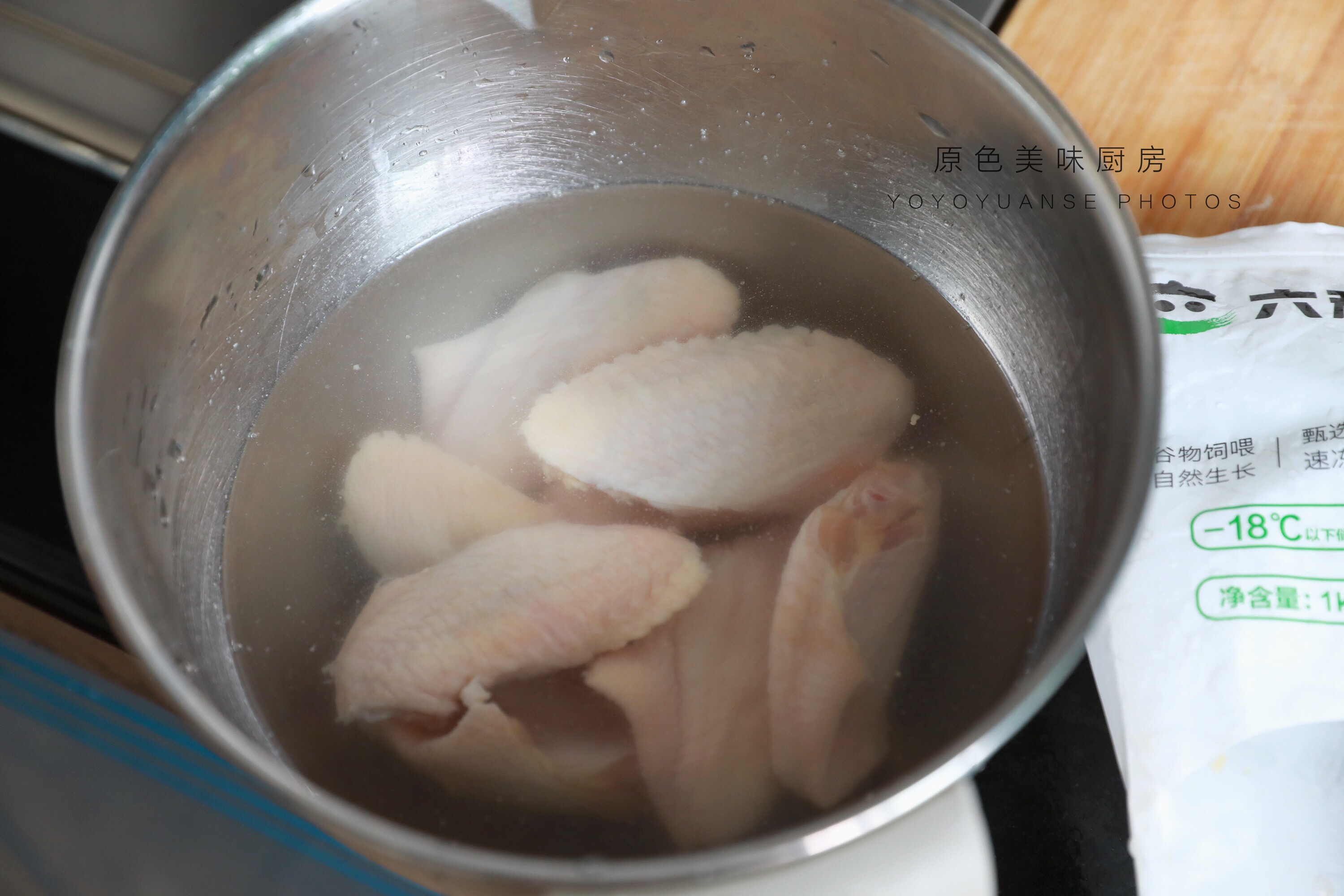 1.鸡翅浸泡,清洗干净。