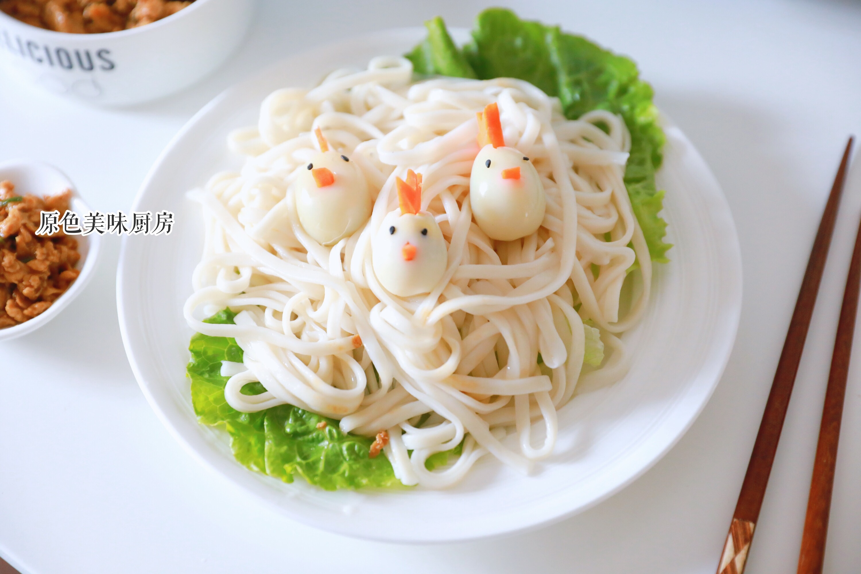 日常生活中早餐是很重要的,很多人早上起来总是没有胃口,再加上最近天气也越来越热,而对于孩子来说也是一样,今天做一道带点童趣的拌面,让孩子爱上吃早餐,另外鸡蛋也是比较有营养的,多一些,让孩子爱上早餐。