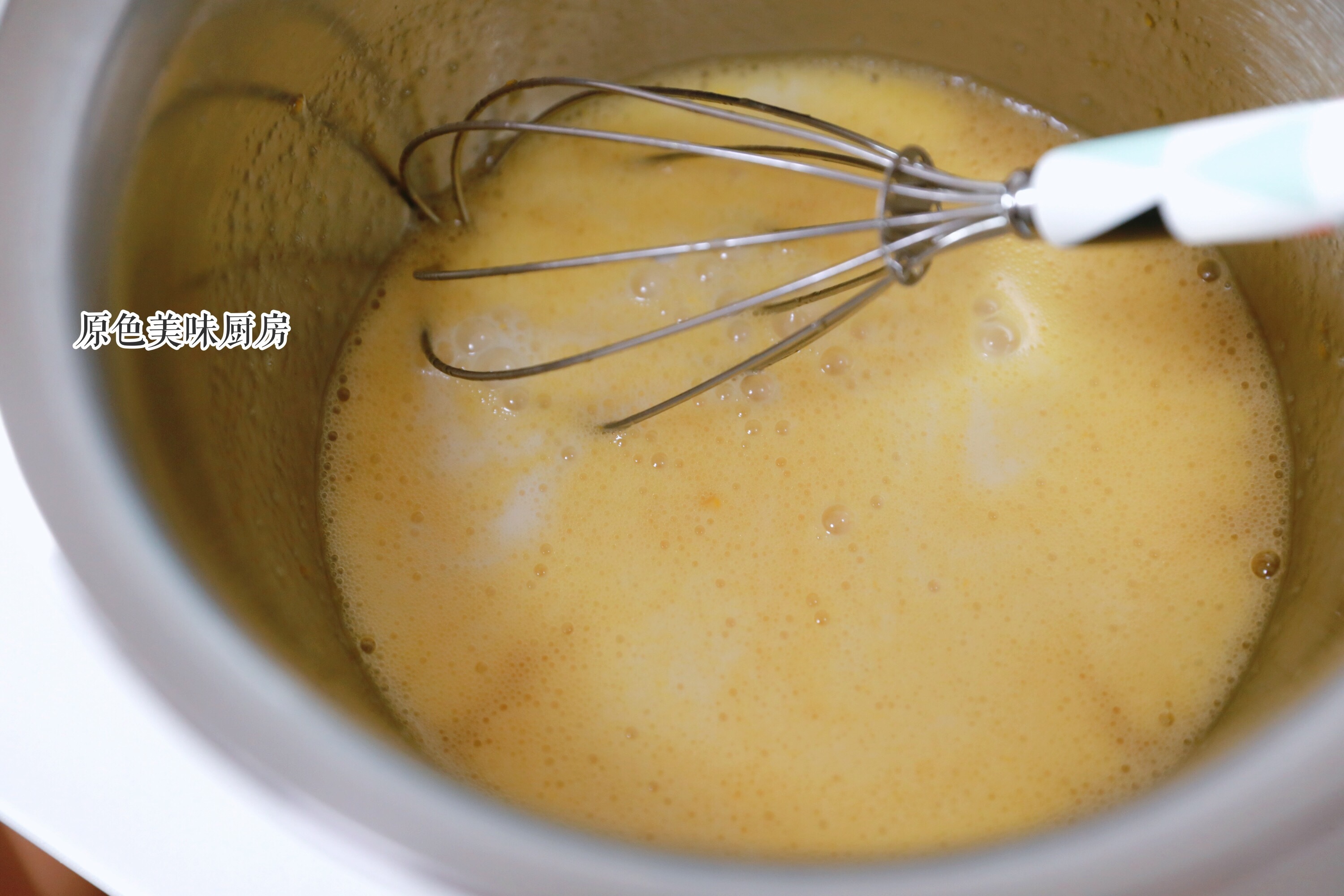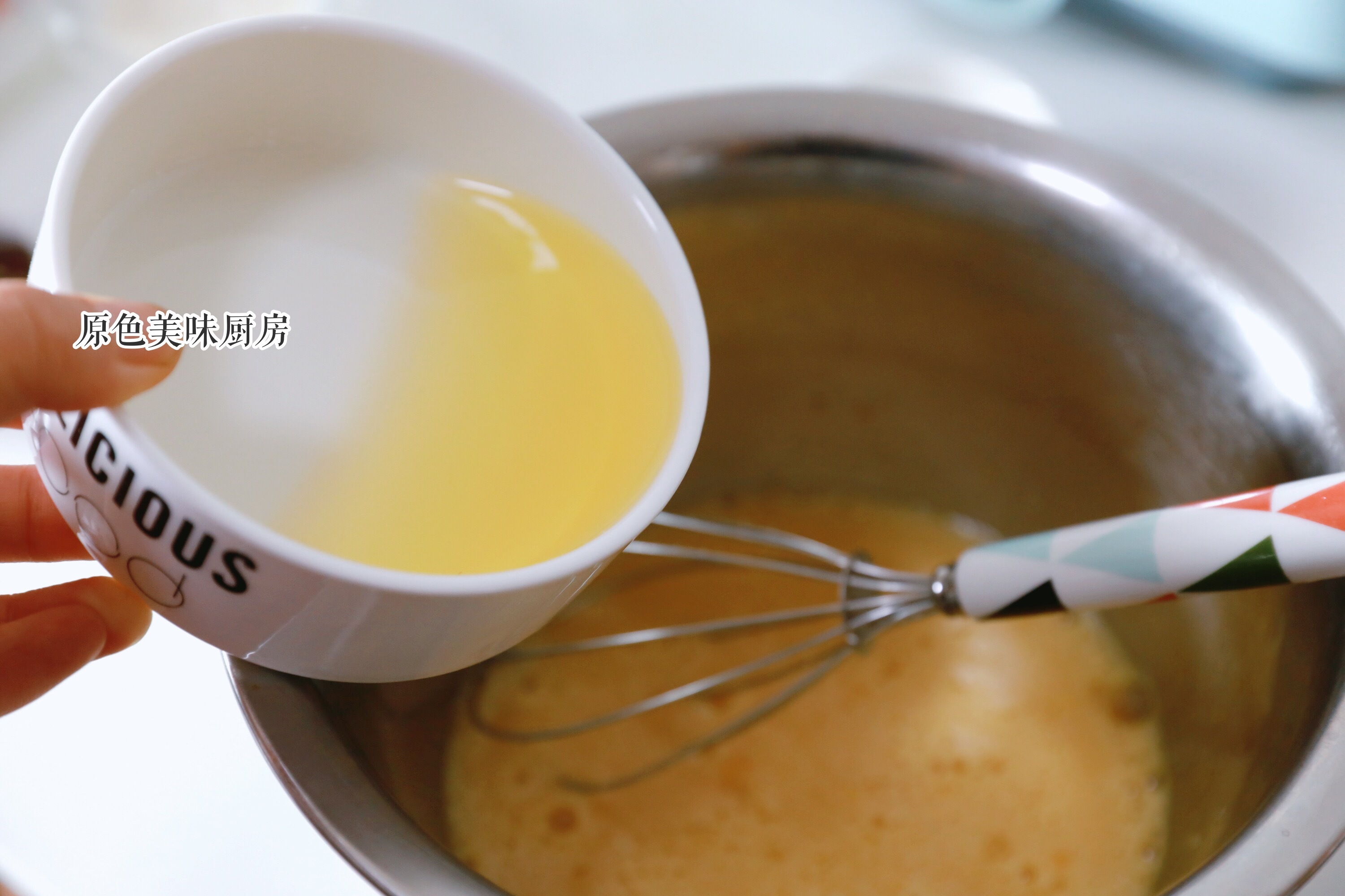 3.加入色拉油,乳化均匀。