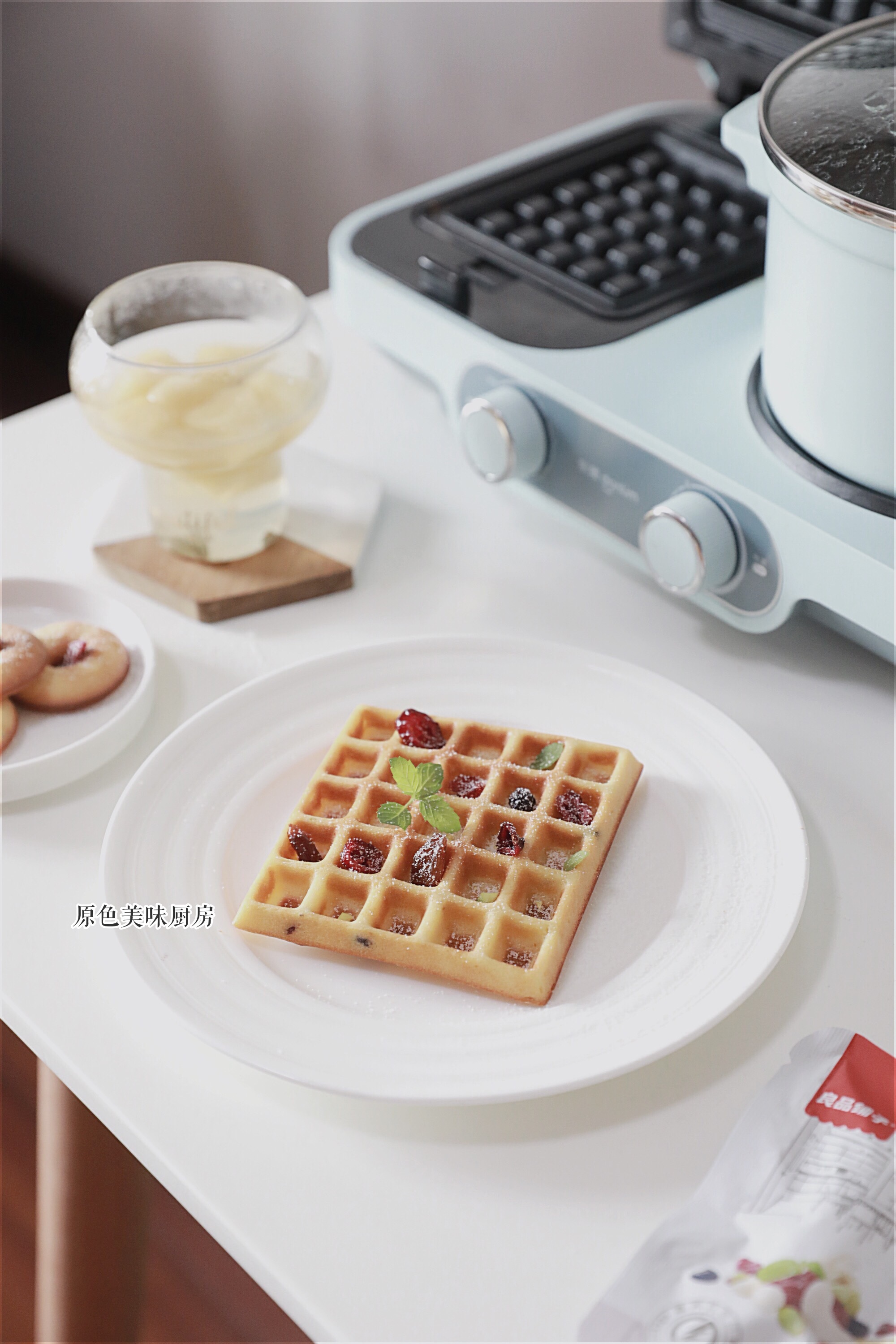 每天吃什么早餐是很多小伙伴发愁的事情,随着生活水平的提高,很多人对早餐也有了新的要求,除去能吃饱外,好吃,有营养也成为必然要求了,今天分享一款自制华夫饼,里面添加了坚果,让它更有营养了。另外,搭配一款水果茶,让你家的早餐吃出早茶的感觉。