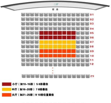 大厅(如21-25排) 9 10排位置最佳