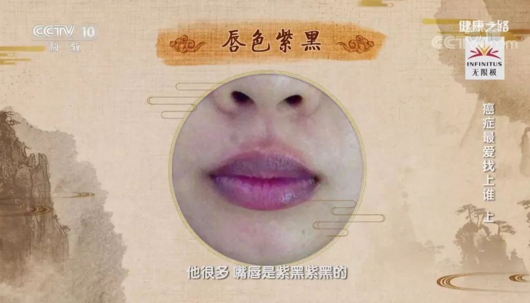 嘴唇:唇色紫黑色,可能是血瘀。