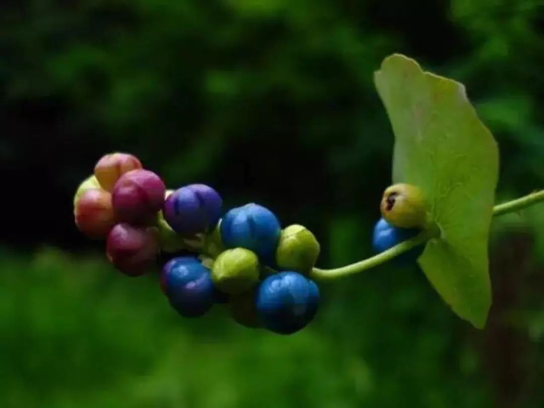 花绿白色,腋生短穗花序,瘦果球形,蓝黑色,藏于花萼内。
