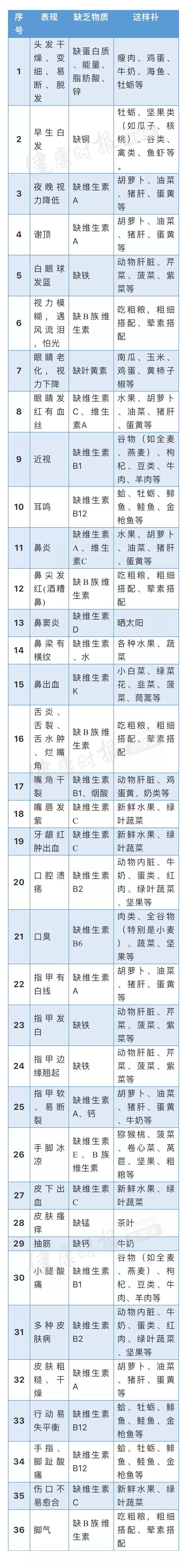 这张表,从头看到脚,就知道你需要补啥了!收藏!