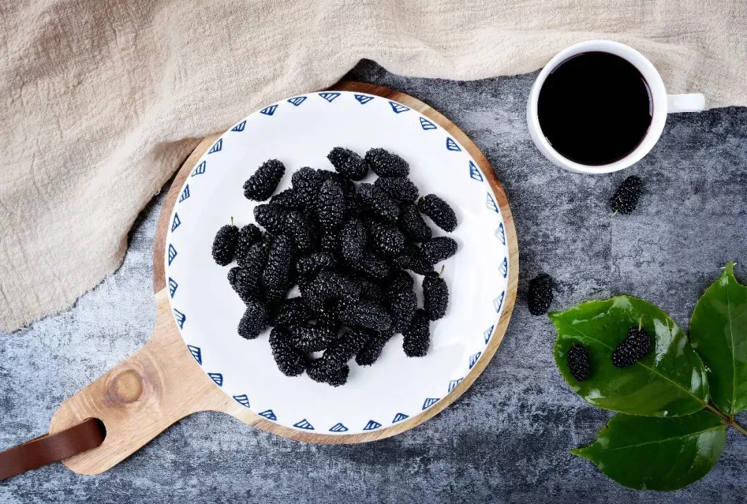 桑葚干是目前水果及其制品中含天然铁最丰富的,每100克含铁42.5毫克,是水果中的补血果。一般建议将桑葚干煮粥吃,每日食用一碗桑葚粥不但可以补血,还可以美容。