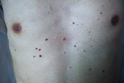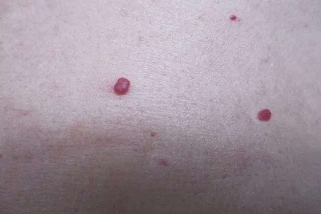 血痣基本上长在身上,手上,腿上,就像打完针的血泡,一个红点,大的像枸杞子那么大。