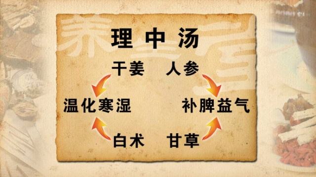 张仲景创立的“理中汤”,应该算是中药方剂中的“男人”了,因为它的药物组成全是纯阳的热药:人参、于姜、白术、甘草。这个方子用到宋代,又增加了附子,就是现在的附子理中丸。