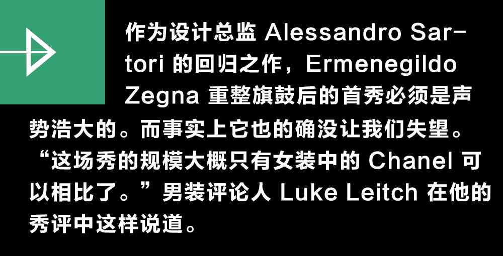 男装周进行到现在,我们终于在米兰的第一天看到了这样一场充满诚意和惊喜的大秀。就像是吃完了餐前小食迎来了第一道主菜一样,也好让我们这些时装编辑恢复元气继续接下来的行程。不得不说,Alessandro