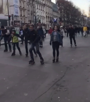 今天巴黎最后一天,在赶秀的路上遇到一行轮滑队伍……兴奋的跑过去拍照。满脸写着疲惫的我,一股热情健康的气氛瞬间被笼罩。没想到队伍还挺长,最后警车为他们保驾护航……队伍中间还有个脚踩双排轮,手推婴儿车的女人,赞呐!