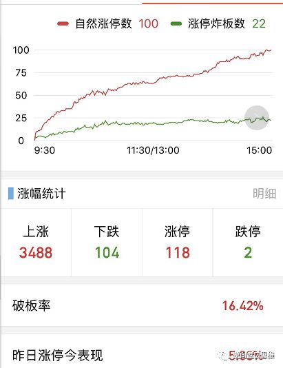 涨跌数据分析来看。市场人气接近沸点。全天自然涨停数据是100加,仅有俩只ST股跌停,封板炸板率仅为百分之16,这个数据表明市场热度是非常高的。明日数据会大幅度缩减,预期热度会比今日降低。所以需要注意低位跟风的兑现机会。尽量向俩个端口靠拢,多选择一进二的股票来跟进。