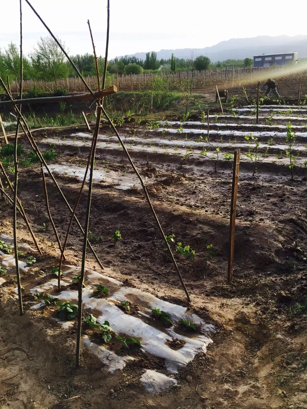 每年的四月和十一月是葡萄田中最繁忙的季节。今年也不例外,出土、架杆、拉丝、绑枝……转眼到了五月,才来得及补种新苗。