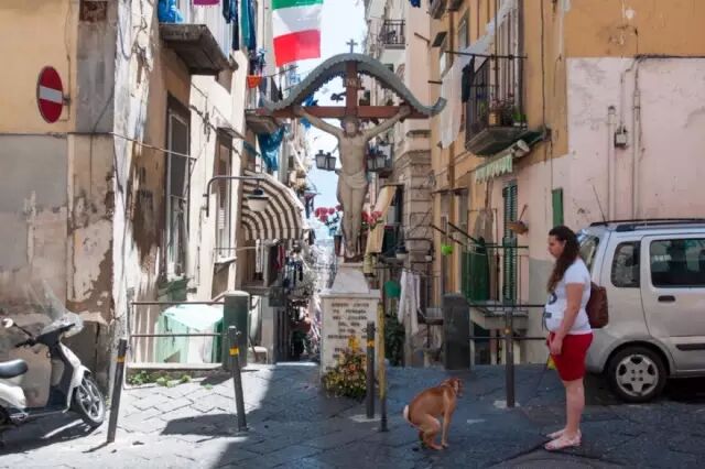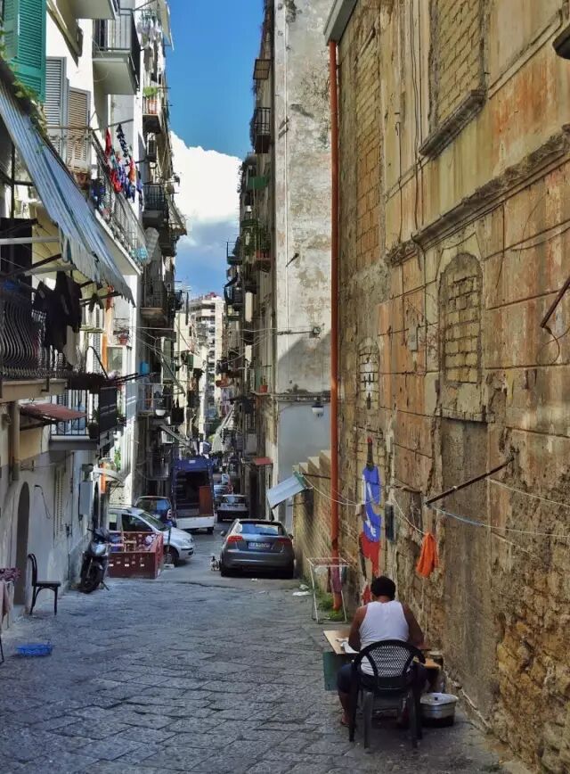 有人说这里的一些街区颇似南美巴拉圭,或是香港庙街、哈尔滨老道外。市集拥挤,老旧的房屋连墙接栋,窄巷上空见缝插针地晒满床单和衣裳,漆壳斑斑的墙壁上画着各式涂鸦与文字,老楼房里塞满了不同肤色的移民。这里是东欧和非洲的移民首选的落脚地,零九年以来的经济危机更加剧了无业游民数量的增长。如今的那不勒斯猖盗横行、乞丐泛滥、街道肮脏,这些便是这座城给旅人们最直观的印象。
