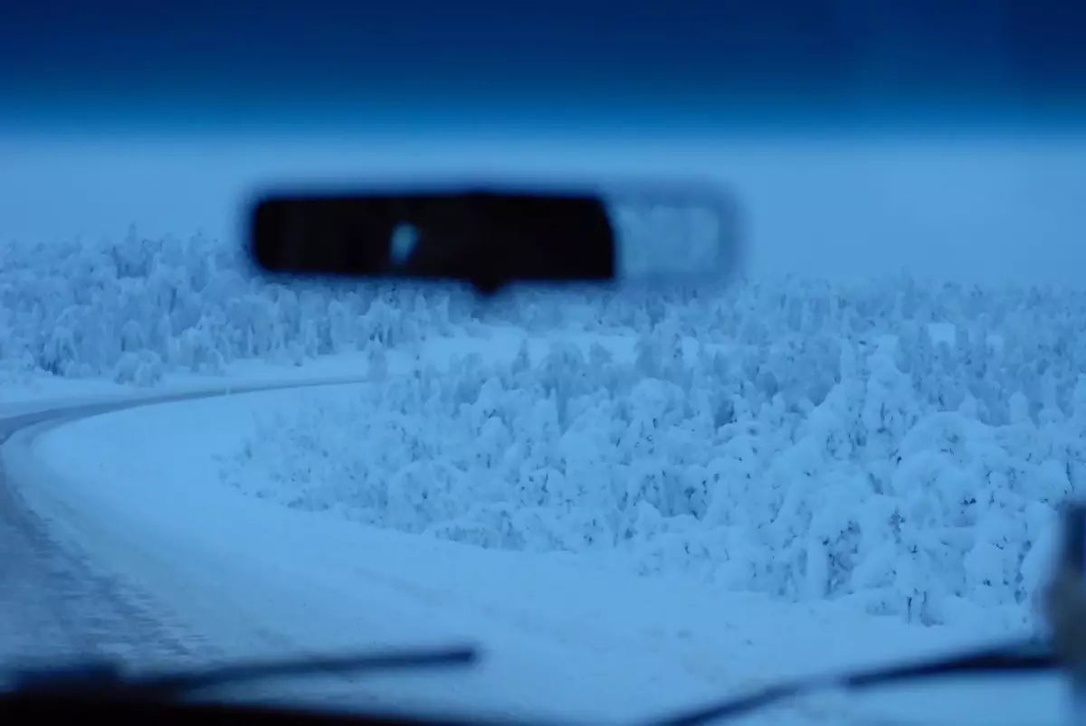 我们眼前,除了小屋窗里透出的微弱光线之外,只有满天忽隐忽现的绿色,和被天空照地暗暗发亮的雪地。一道道深浅不一的绿光,象从天上垂下来的绸带,每一条极光都有自己独特的形状,有的是一片模糊的绿色,有的带着锯齿,无时无刻不在跳跃着变幻形态。你以为是有风,可仔细一感受,周围却什么动静都没有,就连空气都像被冻结住了。 我们拿出相机,可是这场极光来得实在有些让我们措手不及,还没有机会练习一下技术,最终也没能照下清晰的照片。