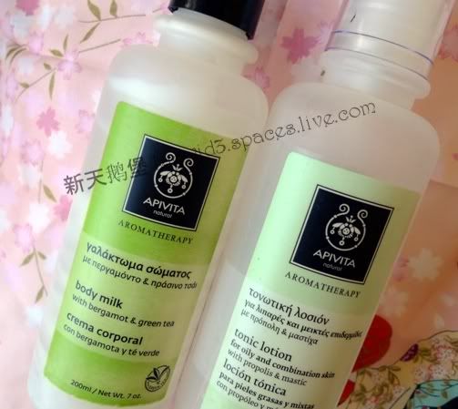 带去西班牙的身体乳撑了4天就用完了,在瓦伦西亚的商场碰上很白菜的apivita的身体套装,一个绿茶的身体乳+一个身体磨砂