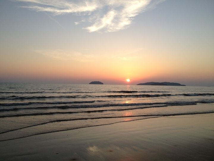 姐妹花说不可以浪费美丽的夕阳,回到kk我们马上坐出租车去了香格里拉酒店附近的Tanjung Aru海滩看日落,