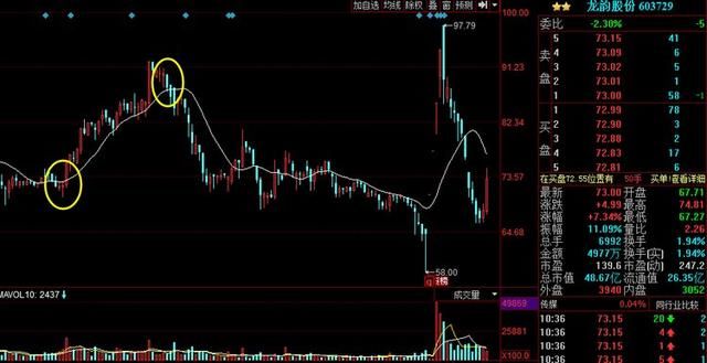 4、价格突然暴涨,突破平均线,且远离平均线,则有可能反弹回跌,为卖出时机。