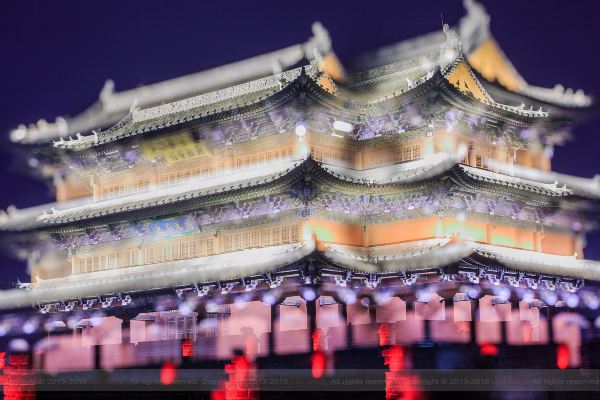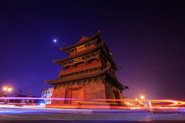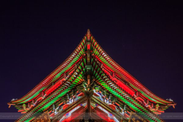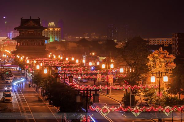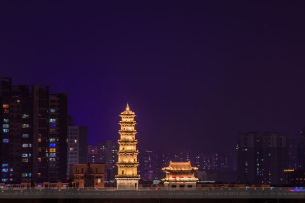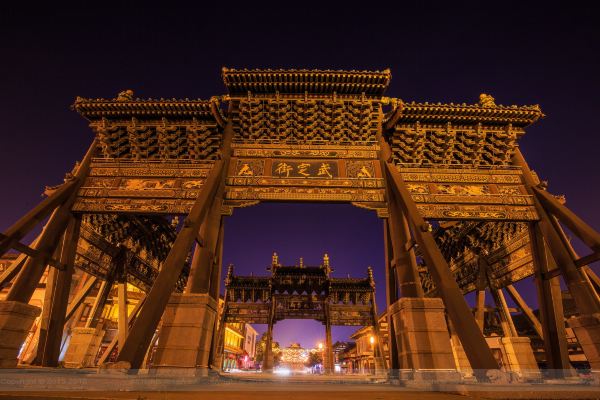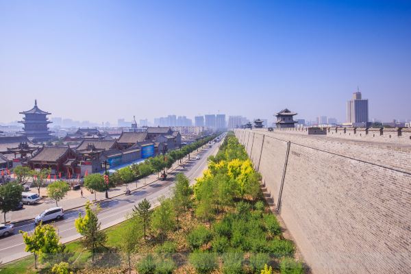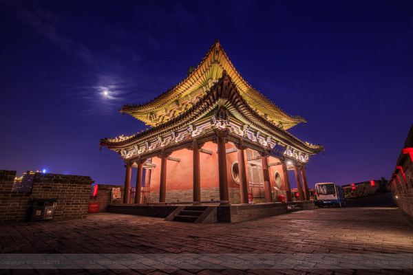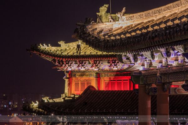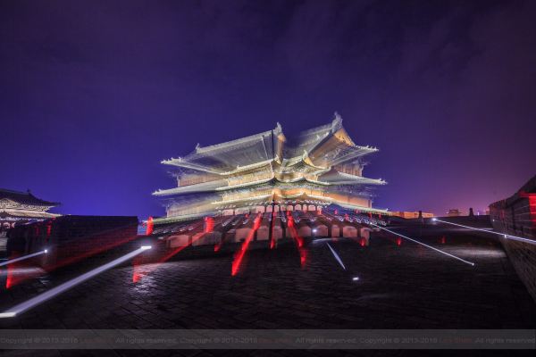 作为北方镇边重地,大同城池雄武、厚重、又不失威严。从城墙上往远处眺望,可以看到街道向远处延伸。比起白天的喧嚣,此时更多了几分寂静