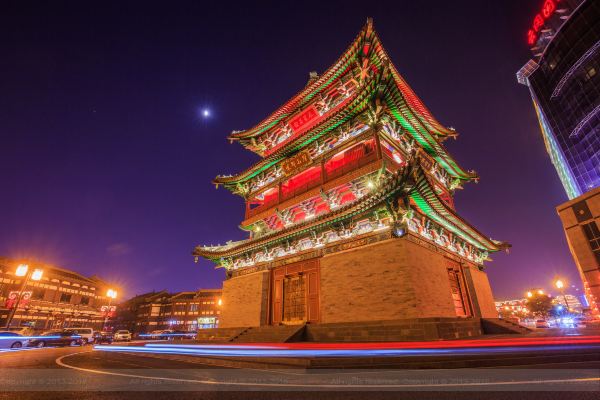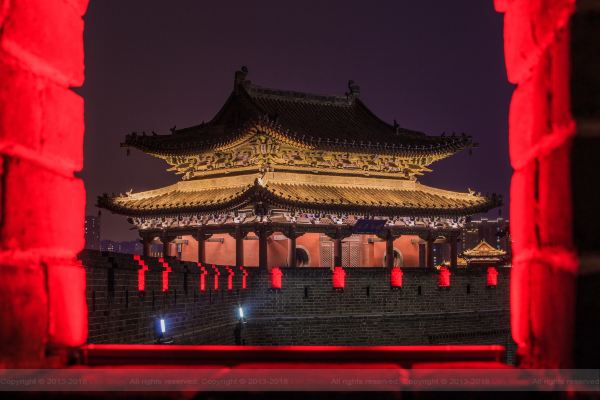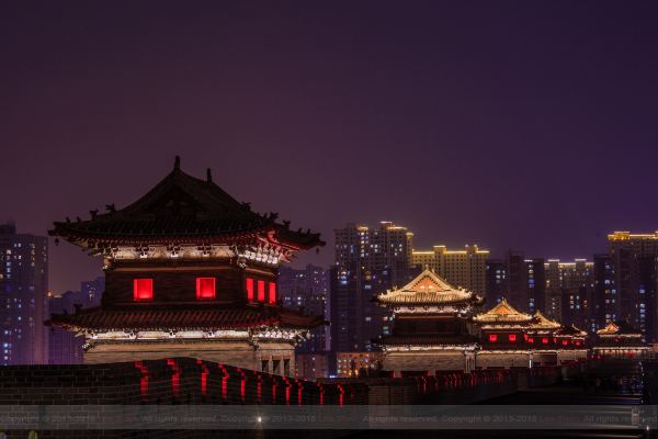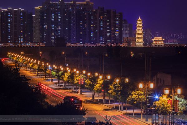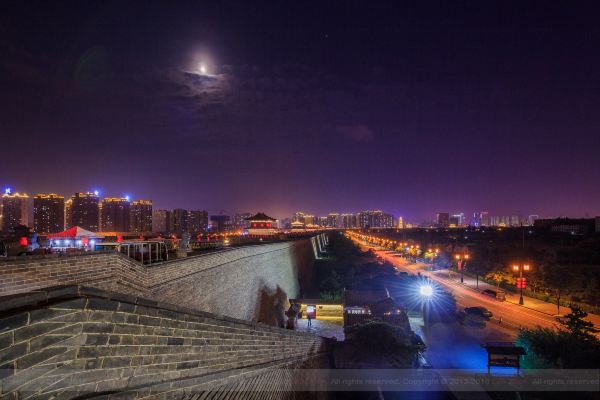 夜色中正在复建修缮中的古城墙,这也是全国最完整最壮观的城墙。