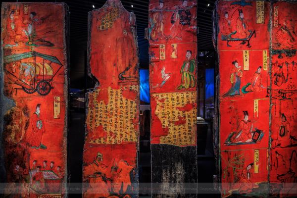 馆中最重要的展品是二层北区的司马金龙夫妻合葬墓地出土文物,陪葬品的精细程度堪称迷你兵马俑,而当中最让人震惊的是石棺床上的漆面屏风,总所周知漆面的物品不易保存,而如此精美且能够保存至今的屏风不得不说其本身就是一个奇迹。