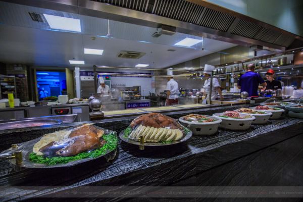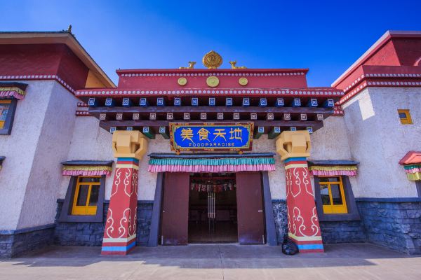 景区后半部分的特色建筑群中提供来自全球的各色美食供游客选择