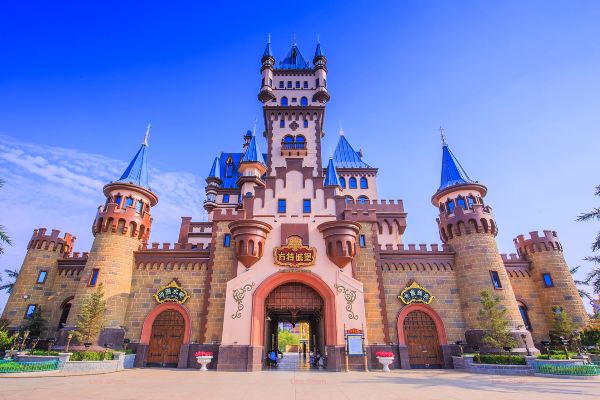 一进园门,扑面而来的是一座座梦幻般的城堡。这些风格欧化色彩斑斓的神奇城堡令人产生无限的遐想